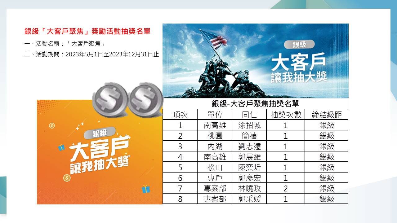 銀級-大客戶聚焦獎勵活動抽獎名單